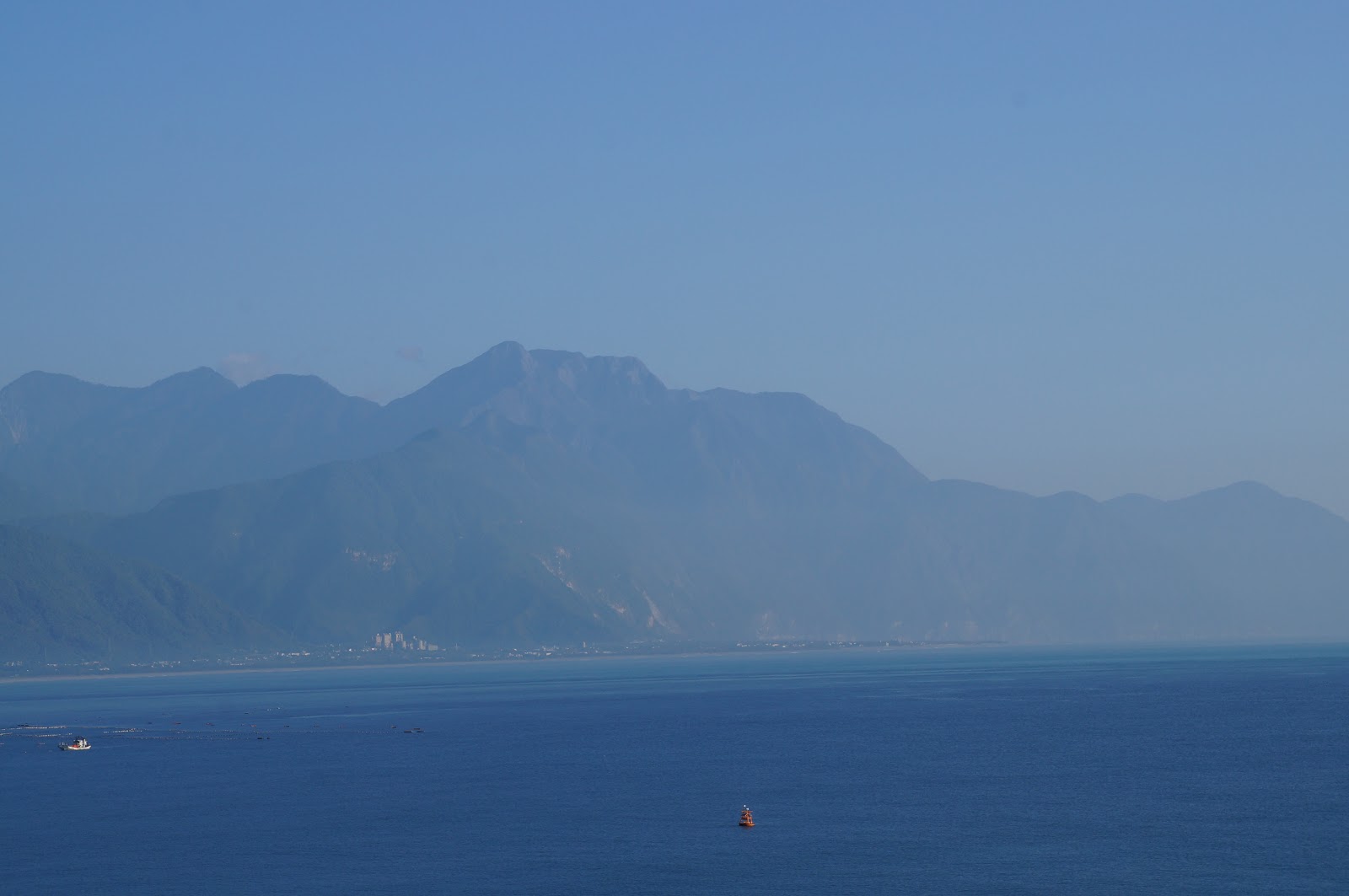 藍天、白雲、海洋、沙灘還有山 |